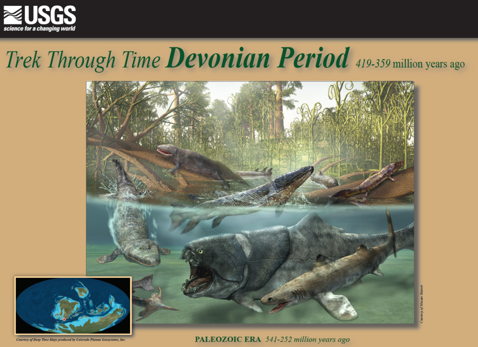 デボン紀は「魚の時代」とも言われるほど、多種多様な魚が進化した時代です。