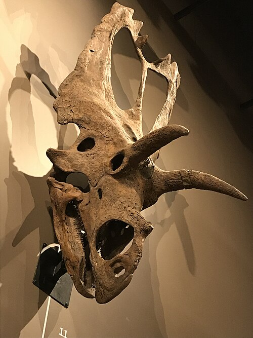 メキシコで見つかった角竜で、トリケラトプスよりフリルは小さいが角が立派なのが特徴。